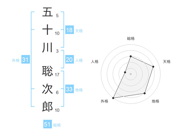 五十川 聡次郎さんを姓名の画数から五運を鑑定