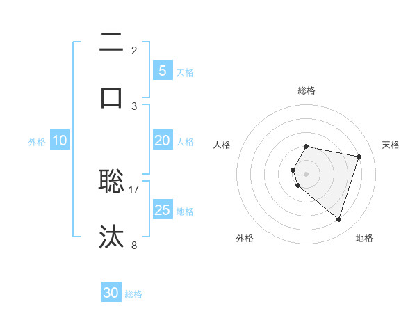 二口 聡汰さんを姓名の画数から五運を鑑定