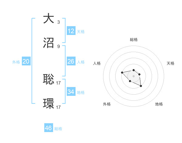 大沼 聡環さんを姓名の画数から五運を鑑定