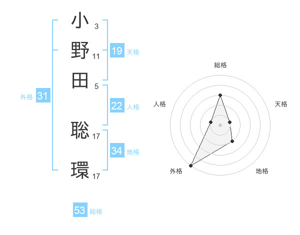 小野田 聡環さんを姓名の画数から五運を鑑定