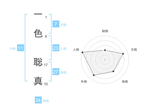 一色 聡真さんの総格は34画の2点!