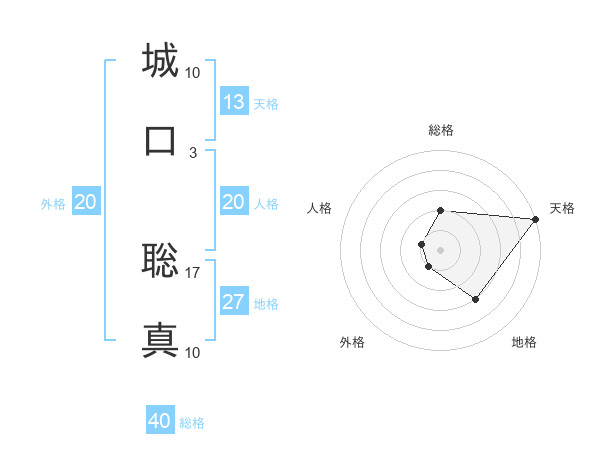 城口 聡真さんの総格は40画の2点!