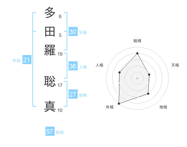 多田羅 聡真さんを姓名の画数から五運を鑑定
