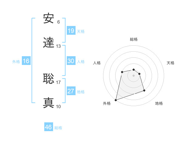 安達 聡真さんの総格は46画の1点!
