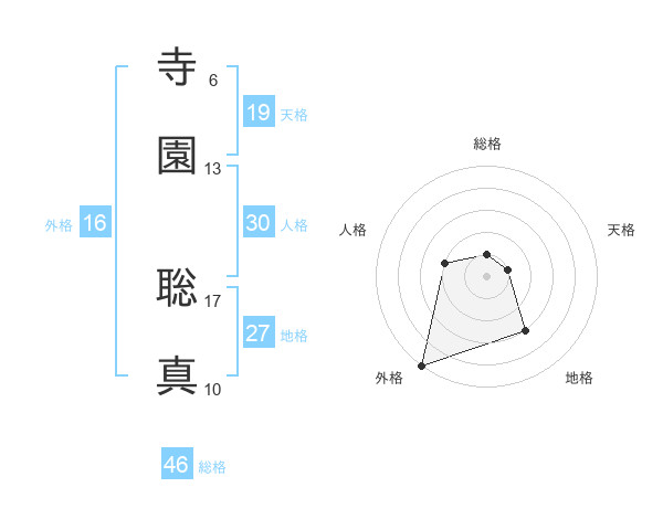 寺園 聡真さんの総格は46画の1点!