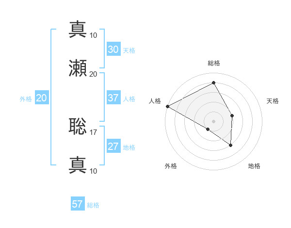真瀬 聡真さんの天格は30画の2点!