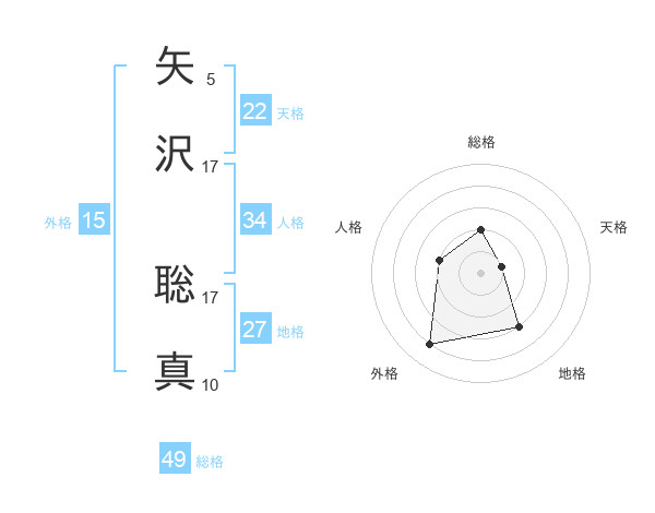 矢沢 聡真さんを姓名の画数から五運を鑑定