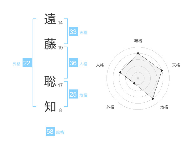 遠藤 聡知さんの総格は58画の4点!