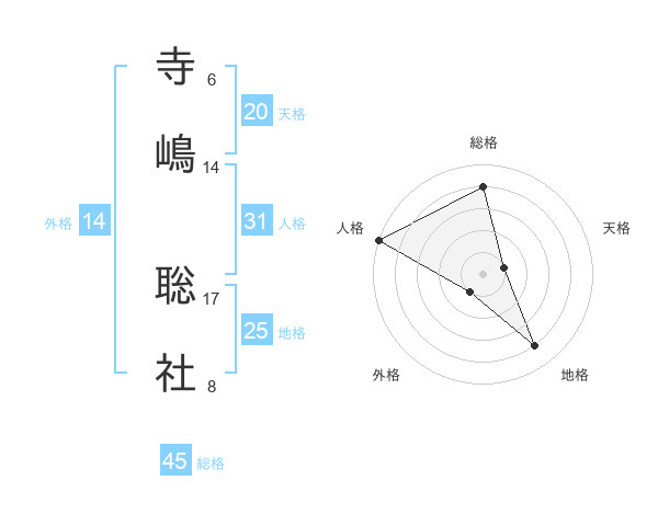 寺嶋 聡社さんの総格は45画の4点!