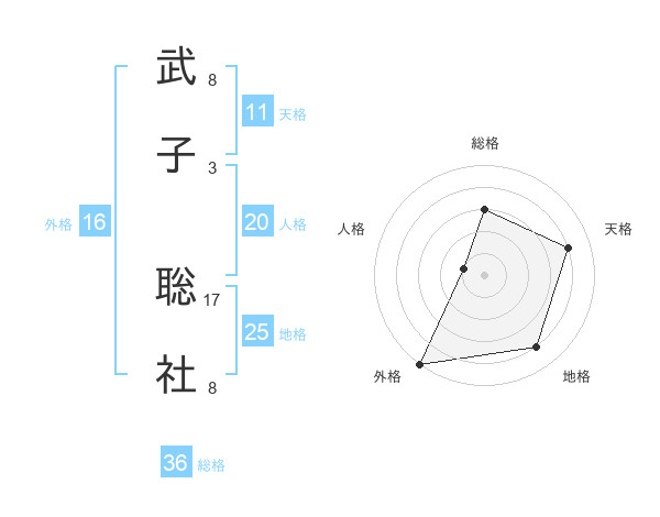 武子 聡社さんの総格は36画の3点!