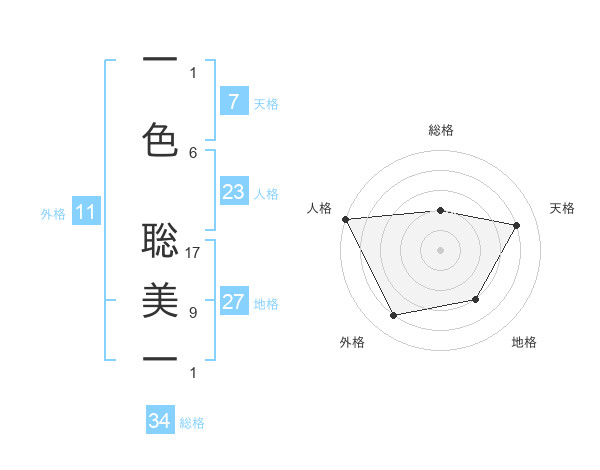一色 聡美一さんを姓名の画数から五運を鑑定