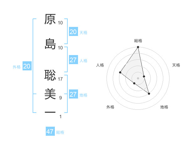 原島 聡美一さんを姓名の画数から五運を鑑定
