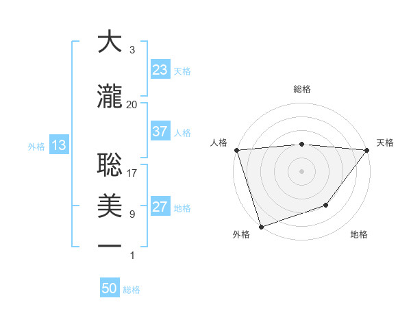 大瀧 聡美一さんを姓名の画数から五運を鑑定