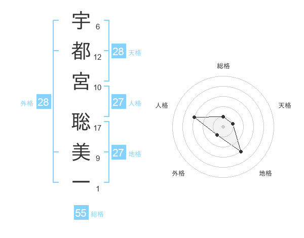 宇都宮 聡美一さんを姓名の画数から五運を鑑定