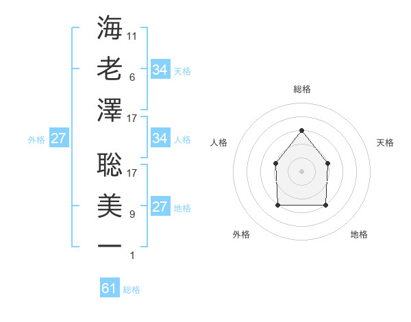 海老澤 聡美一さんを姓名の画数から五運を鑑定
