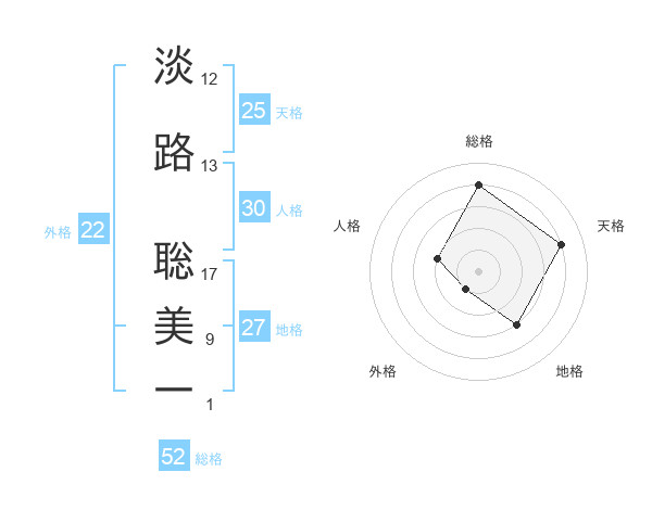 淡路 聡美一さんの総格は52画の4点!
