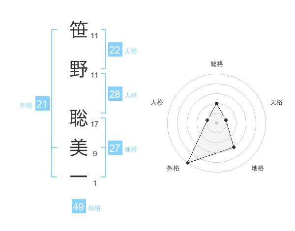 笹野 聡美一さんを姓名の画数から五運を鑑定