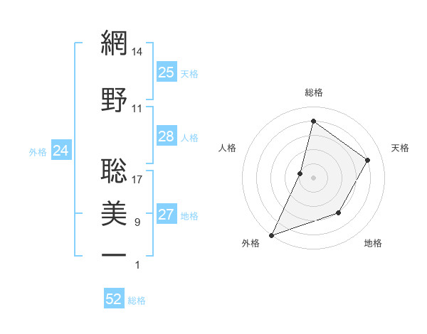 網野 聡美一さんの総格は52画の4点