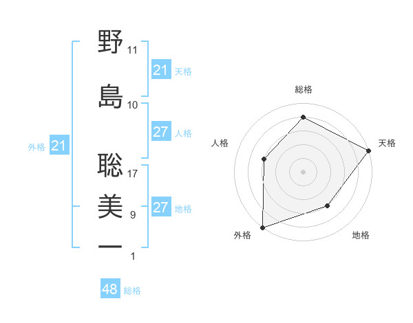 野島 聡美一さんを姓名の画数から五運を鑑定