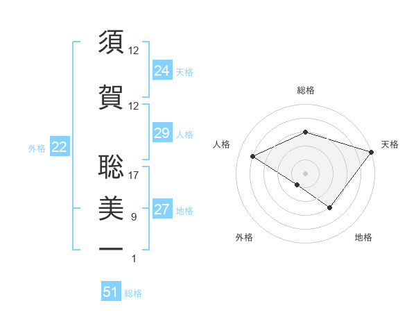 須賀 聡美一さんを姓名の画数から五運を鑑定
