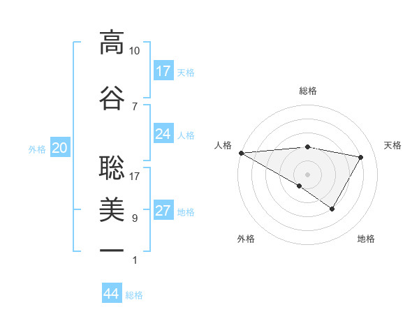 高谷 聡美一さんを姓名の画数から五運を鑑定