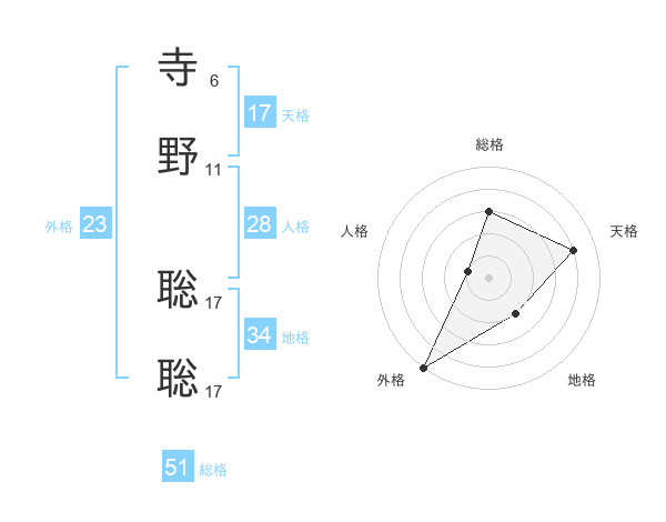 寺野 聡聡さんを姓名の画数から五運を鑑定
