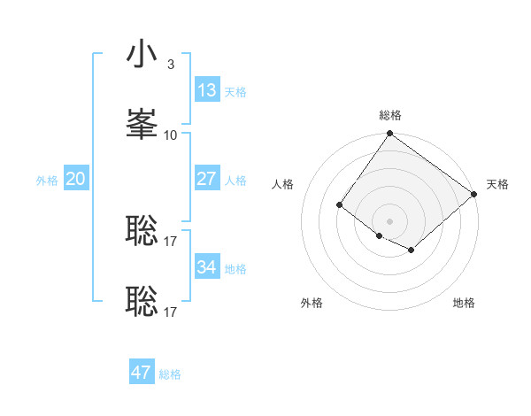 小峯 聡聡さんの総格は47画の5点!