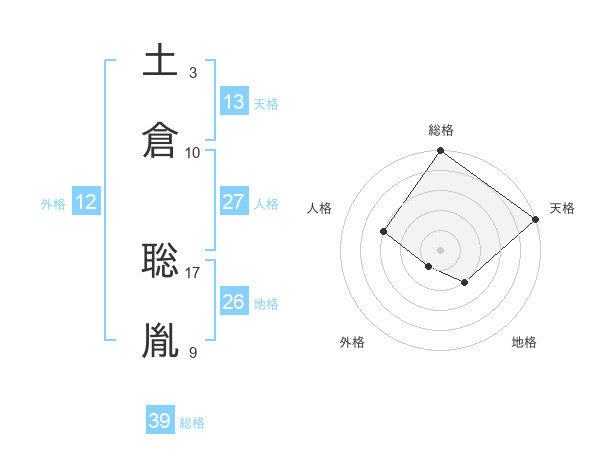 土倉 聡胤さんを姓名の画数から五運を鑑定