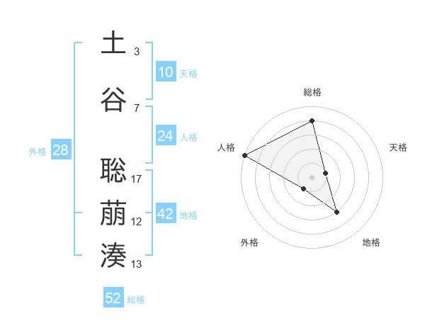 土谷 聡萠湊さんを姓名の画数から五運を鑑定