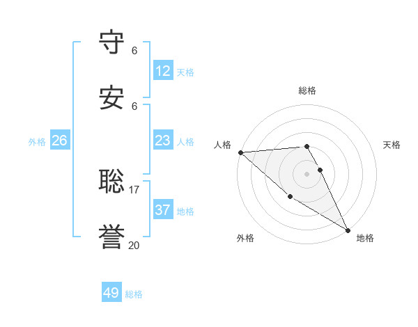 守安 聡誉さんの天格は12画の1点!