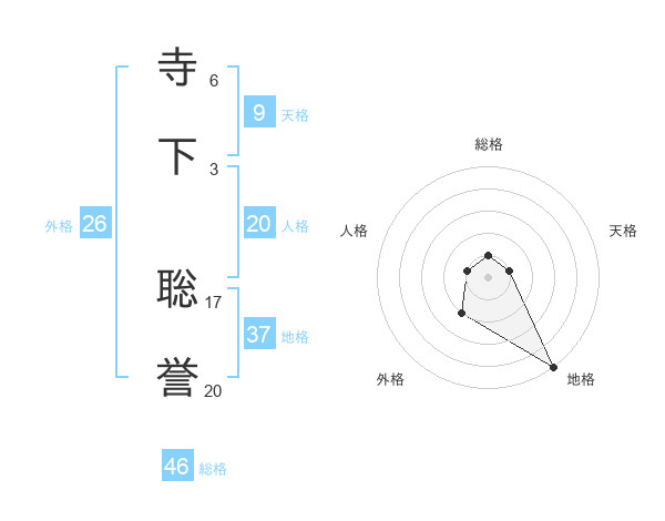 寺下 聡誉さんの地格は37画の5点!