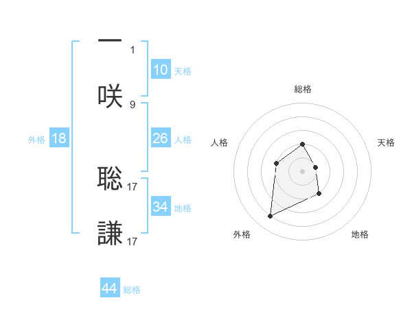 一咲 聡謙さんの総格は44画の2点!