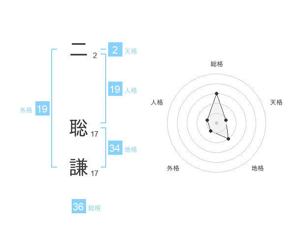 二 聡謙さんの総格は36画の3点!