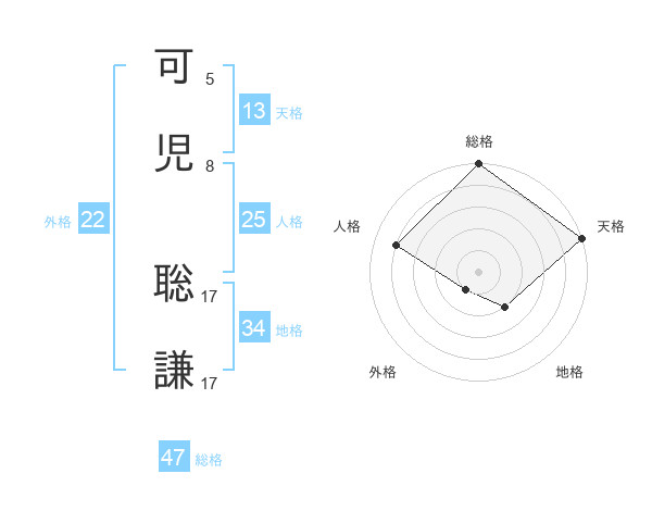 可児 聡謙さんの総格は47画の5点!