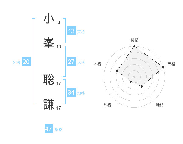 小峯 聡謙さんの総格は47画の5点!