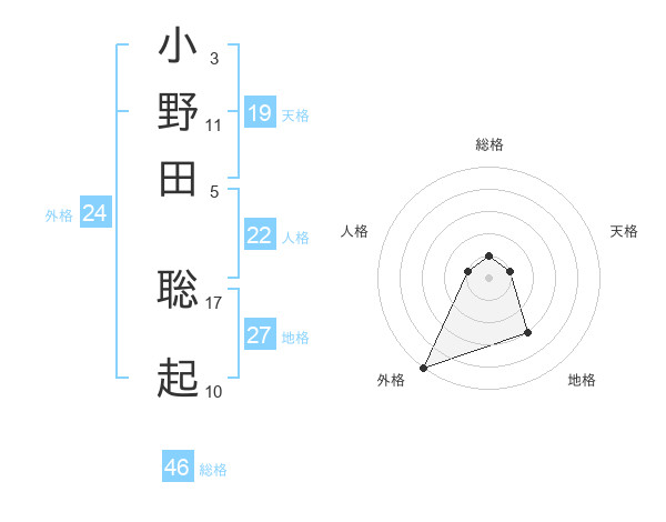 小野田 聡起さんの外格は24画の5点!