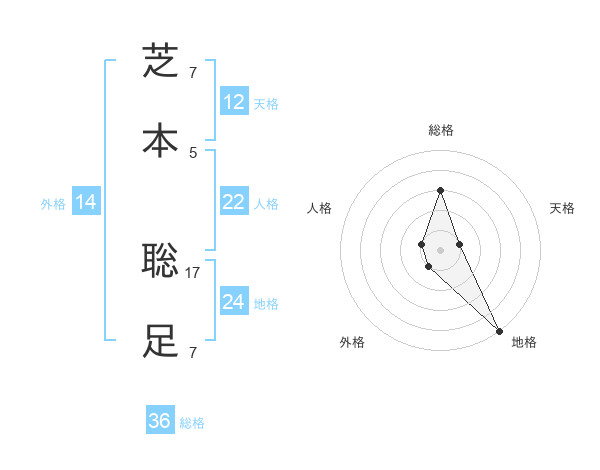 芝本 聡足さんを姓名の画数から五運を鑑定