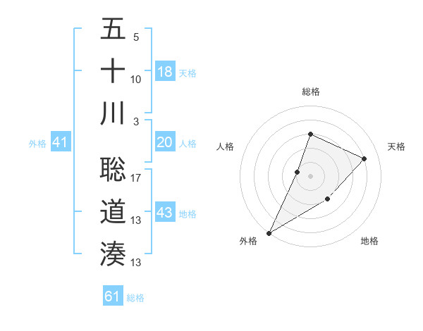 五十川 聡道湊さんを姓名の画数から五運を鑑定