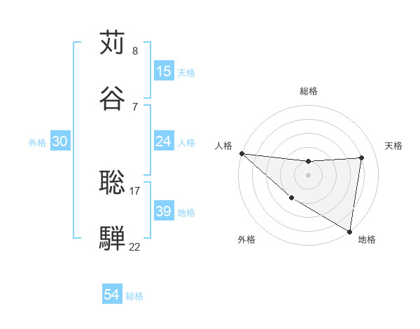 苅谷 聡騨さんの総格は54画の1点!