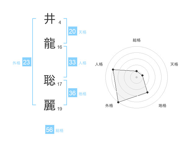 井龍 聡麗さんの外格は23画の5点!