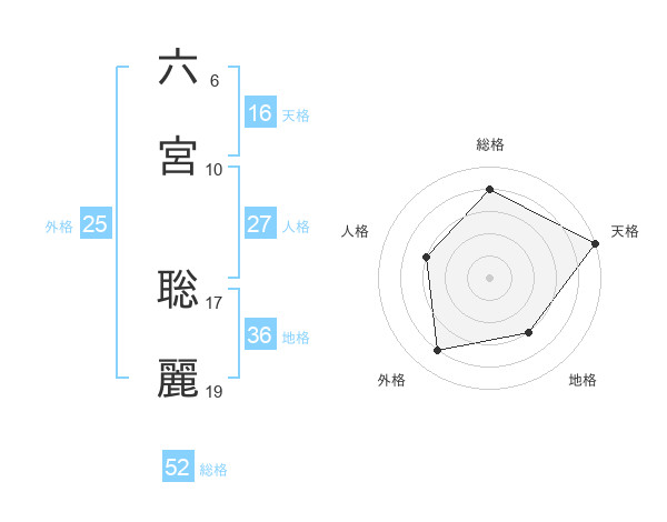 六宮 聡麗さんの総格は52画の4点!