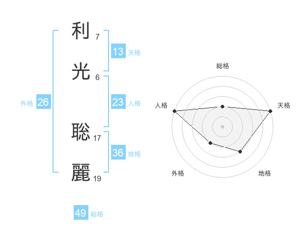 利光 聡麗さんの天格は13画の5点!