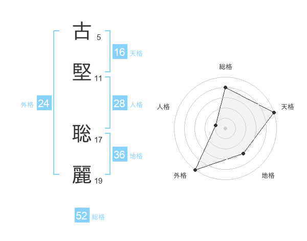 古堅 聡麗さんの総格は52画の4点!