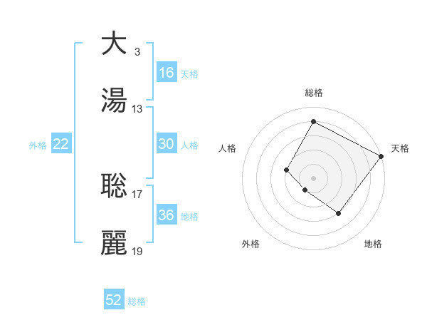 大湯 聡麗さんの天格は16画の5点!