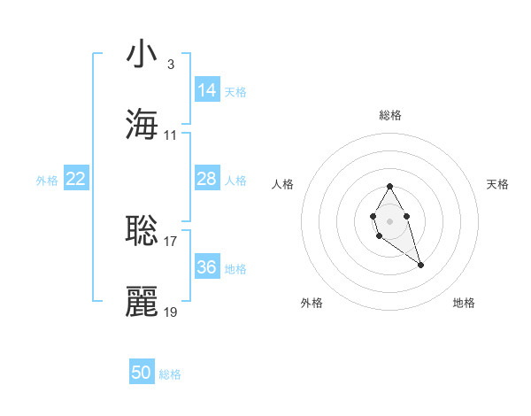 小海 聡麗さんの総格は50画の2点!