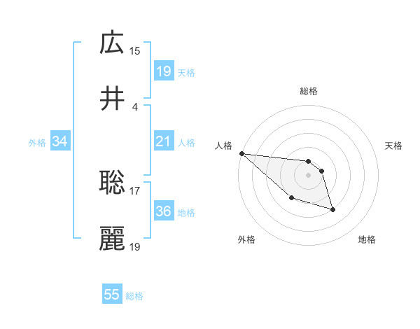 広井 聡麗さんの総格は55画の1点!