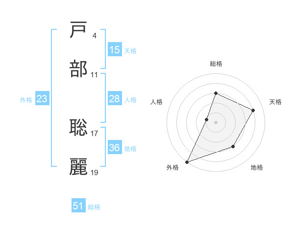 戸部 聡麗さんの総格は51画の3点!
