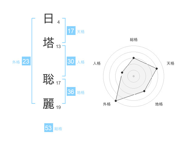 日塔 聡麗さんを姓名の画数から五運を鑑定