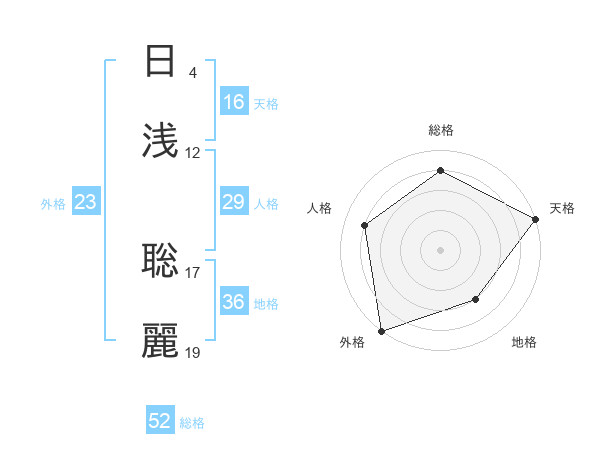 日浅 聡麗さんの総格は52画の4点!