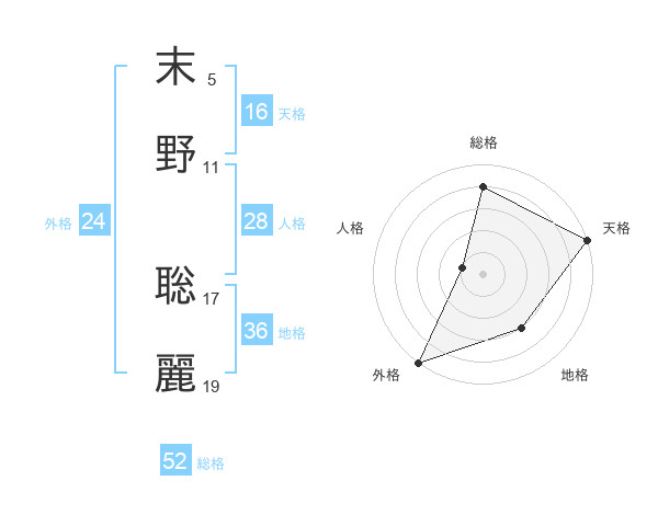 末野 聡麗さんの総格は52画の4点!